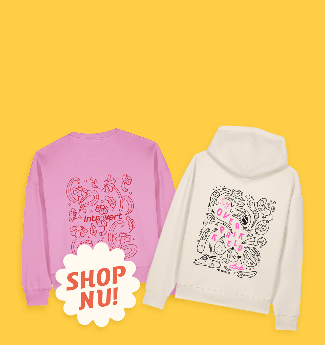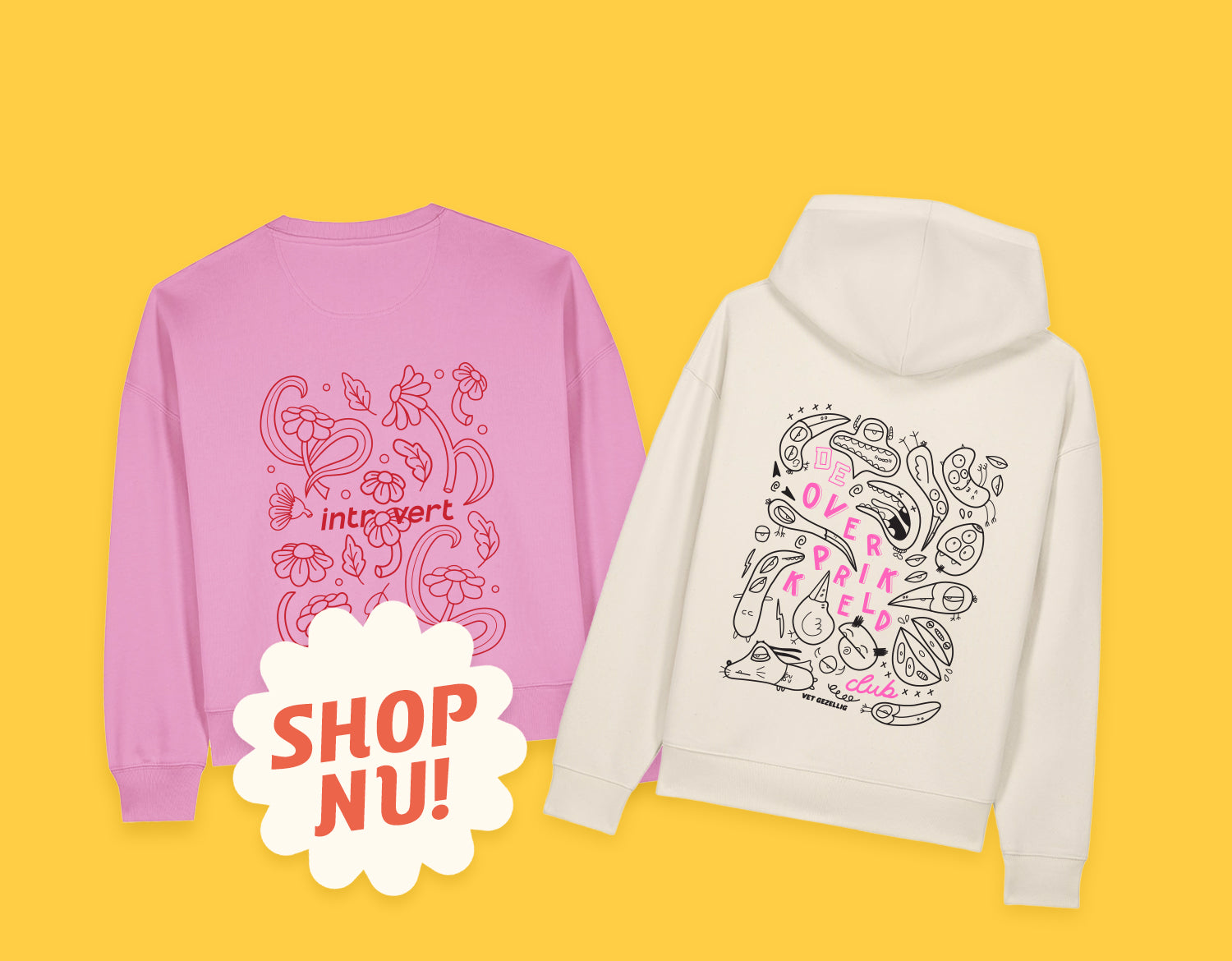 Hoodie ‘De Overprikkeld Club’ - Beige Unisex 85% Biologisch Katoen (Fair Wear)