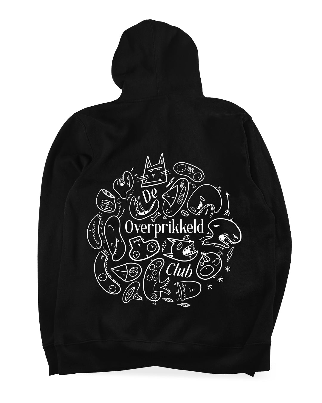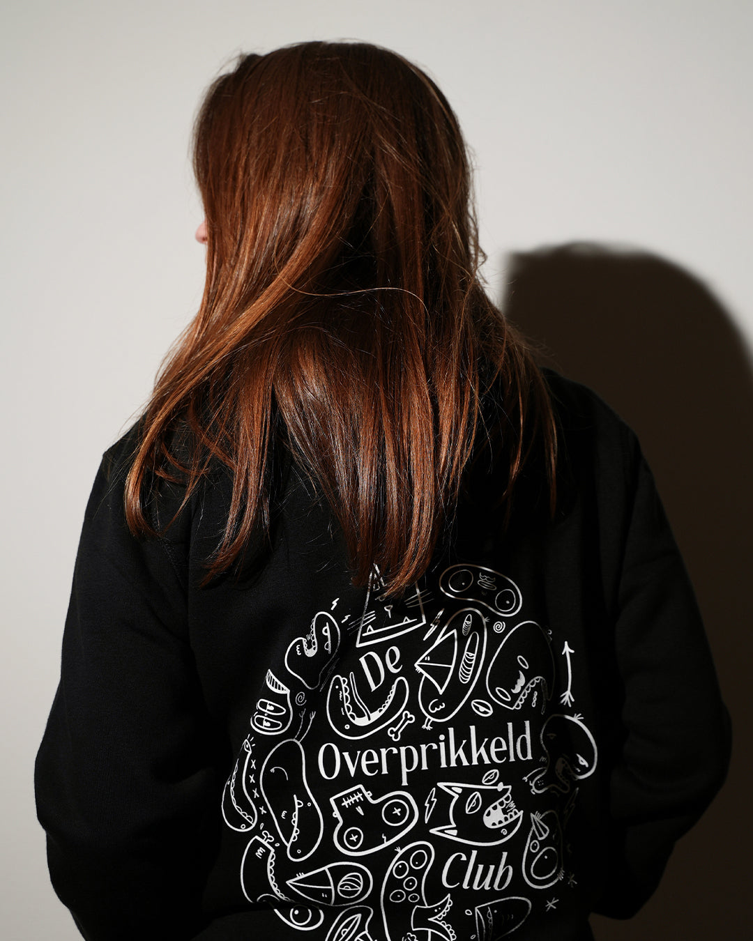 Nieuw (Maat XL): Hoodie 'De Overprikkeld Club' zeefdruk