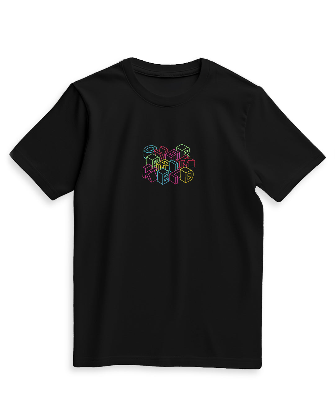 Nieuw (Maat L): T-shirt Blokletters 'OVERPRIKKELD' geborduurd - Zwart Regular Fit