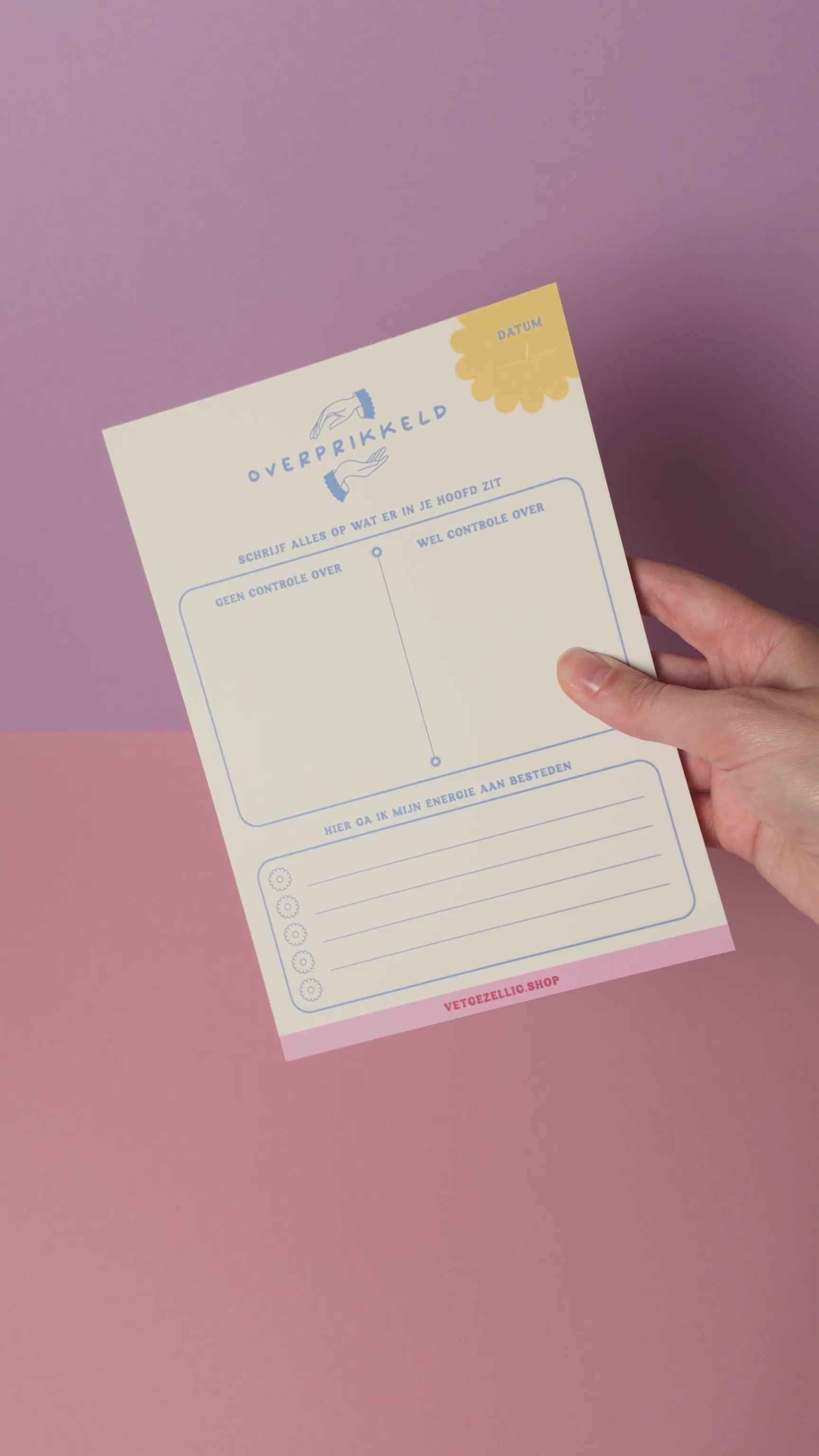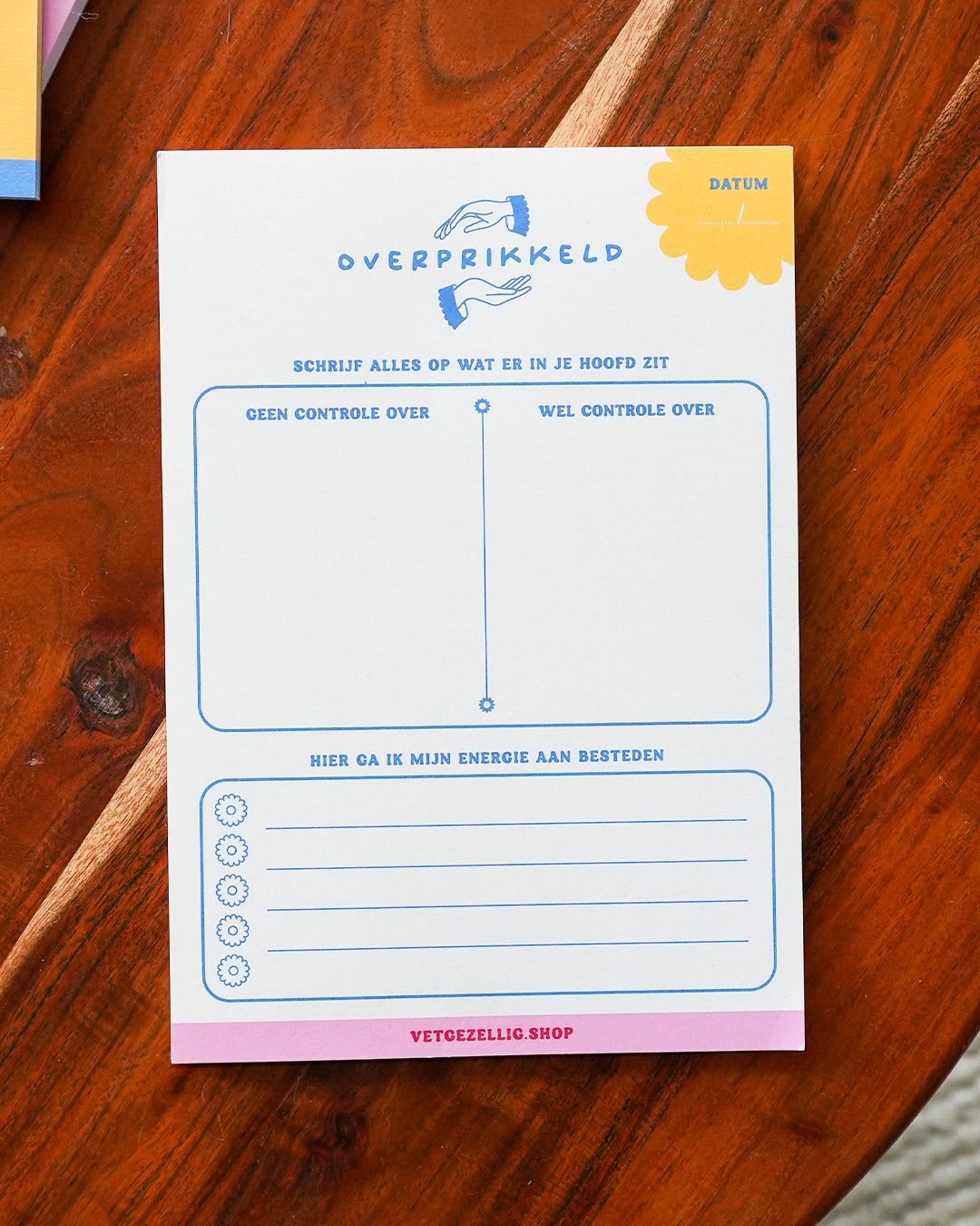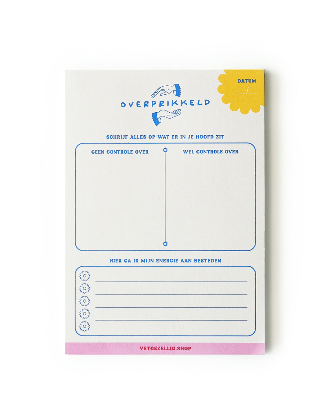 A5 ‘Overprikkeld’ Notitieblok - 50 vellen: Voor die momenten wanneer je hoofd overloopt en je het overzicht kwijt bent. Schrijf alles op wat er in je hoofd zit, bepaal waar je wel en geen controle over hebt, en richt je energie op wat echt belangrijk is. Haal de ruis uit je gedachten en hervind je focus.